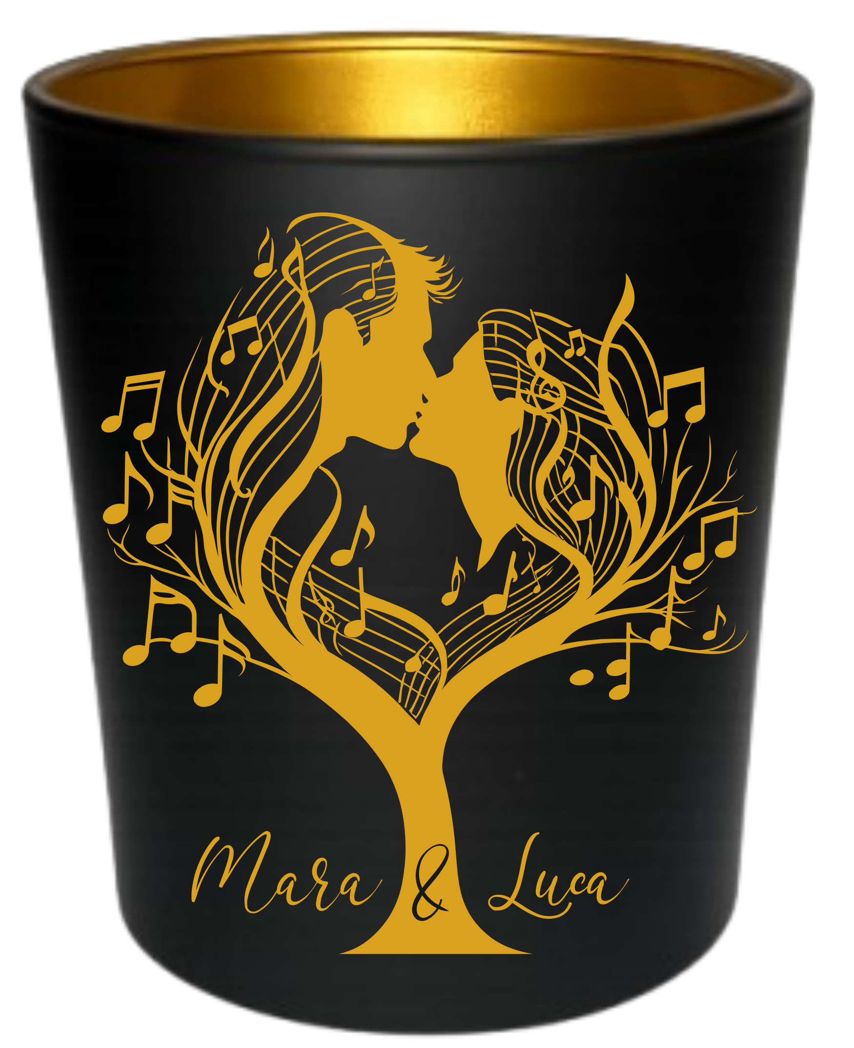 Verwandeln Sie Ihr Zuhause in eine Wohlfühloase – unsere edlen Teelichthalter aus Glas verbinden zeitlose Eleganz mit warmem Kerzenschein. Außen in schwarz matt, innen in schimmerndem Gold, ist das Motiv fein graviert und macht jeden Halter zu einem individuellen Blickfang. Die goldene Innenseite reflektiert das Licht auf besondere Weise und taucht jeden Raum in ein einladendes, gemütliches Leuchten.
